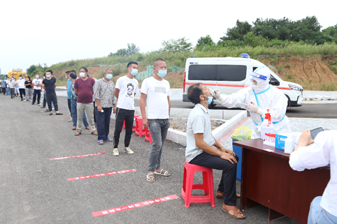 施工人員在進(jìn)行核酸檢測(cè)