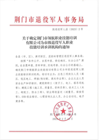 2月16日,公司所屬領(lǐng)航公司取得市級退役軍人職業(yè)技能培訓(xùn)資質(zhì),形成住建、應(yīng)急、人社、退役軍人領(lǐng)域四輪驅(qū)動的局面,實現(xiàn)高質(zhì)量發(fā)展的舉措更實。