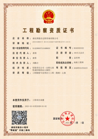 3月3日,公司所屬圖強(qiáng)公司喜獲工程勘察專業(yè)類巖土工程(勘察)乙級資質(zhì),補(bǔ)齊了全過程咨詢產(chǎn)業(yè)鏈中的重要環(huán)節(jié),為客戶提供“一站式”、差異化服務(wù)的能力更強(qiáng)。