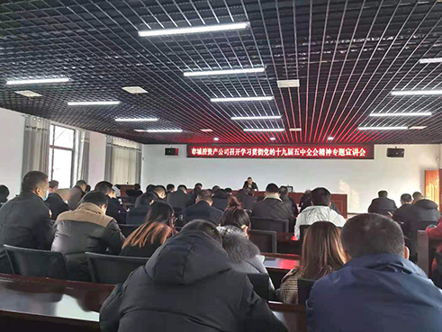 為全面深入學(xué)習(xí)領(lǐng)會(huì)黨的十九屆五中全會(huì)精神,引導(dǎo)廣大黨員干部群眾把思想和行動(dòng)統(tǒng)一到全會(huì)精神上來(lái),把智慧和力量凝聚到落實(shí)全會(huì)確定的各項(xiàng)目標(biāo)任務(wù)上來(lái),推動(dòng)興起學(xué)習(xí)宣傳貫徹全會(huì)精神的熱潮,市城控集團(tuán)所屬市城控資產(chǎn)公司于12月23日在市金盾保安培訓(xùn)學(xué)校多功能電教室組織學(xué)習(xí)貫徹黨的十九屆五中全會(huì)精神專(zhuān)題宣講會(huì)。市城控資產(chǎn)公司及所屬企業(yè)中層及以上干部,公司機(jī)關(guān)工作人員等60余人參加。