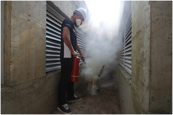 活動一開始,管廊公司管理人員講解了管廊消防安全知識,強(qiáng)調(diào)了管線入廊安全注意事項,演示了防毒面具、氣體檢測儀、對講機(jī)、干粉滅火器等器械的使用方法。隨后在綜合管廊內(nèi)部進(jìn)行了消防應(yīng)急演練,模擬管廊內(nèi)部起火,管廊公司立即啟動應(yīng)急預(yù)案,疏散現(xiàn)場作業(yè)人員,并使用滅火器進(jìn)行滅火。